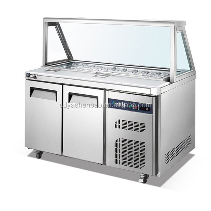 Topic:Commercial Under Counter Fridge Stainless Steel Pans Pizza Salad Prep Table Workbench Refrigerator for Restaurant