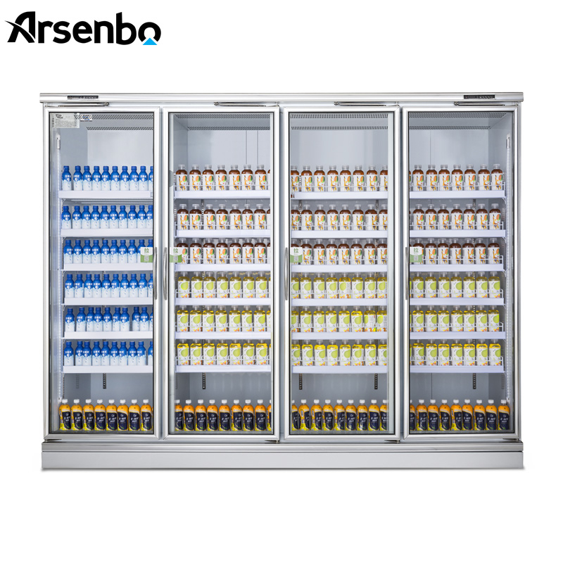 Topic:Commercial Four Glass Door Beverage Fridge Double-Temperature Style Upright Display Refrigerator for Supermarket